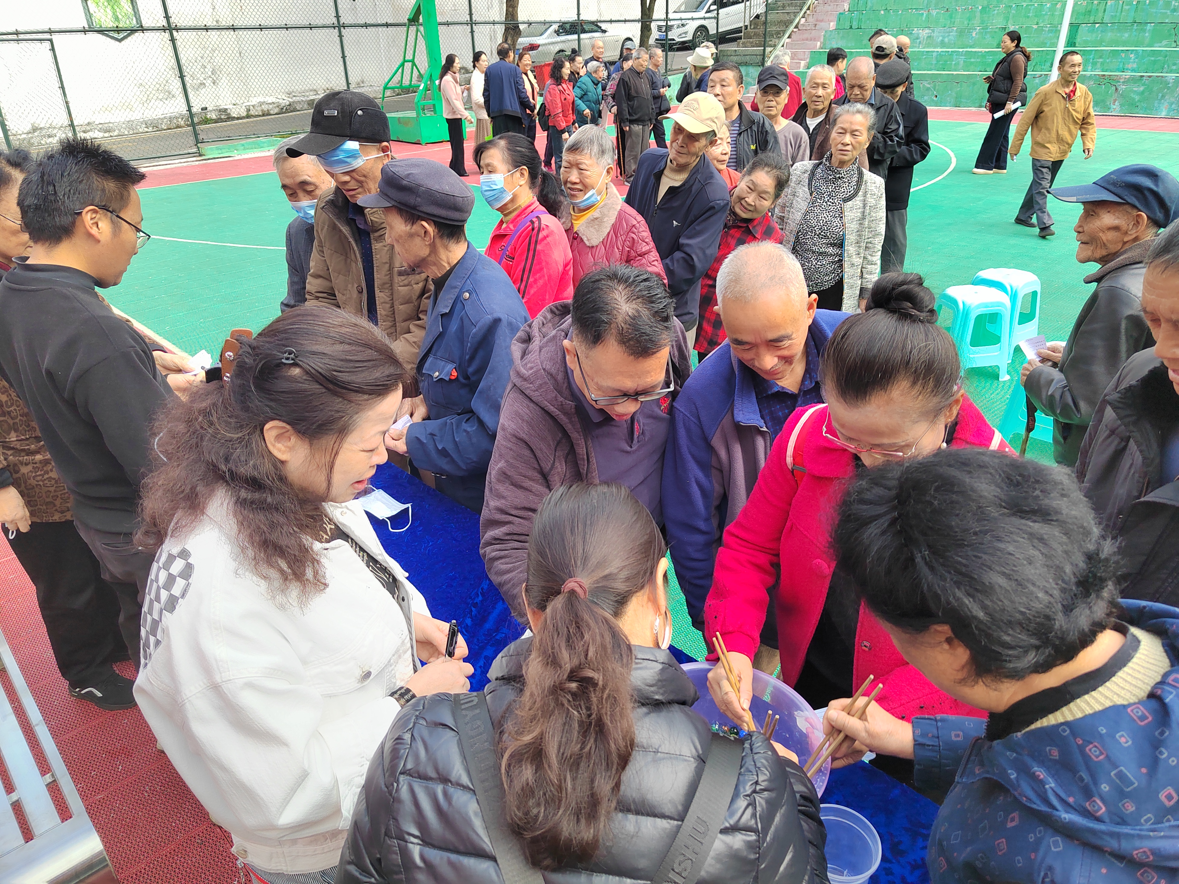 之后,老年节趣味活动正式开始。现场设置了蒙眼击鼓、夹弹子、欢乐投娃及蒙眼插筷子等项目。活动不仅提升了老同志的思维灵活性,也锻炼了他们依靠触觉、听觉等感官对事物的判断力。各项目深受欢迎,退休职工参与热情高涨。